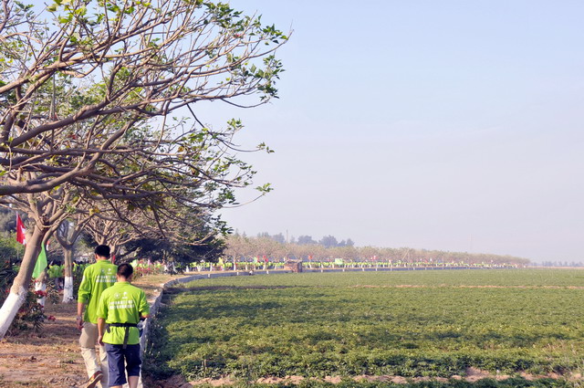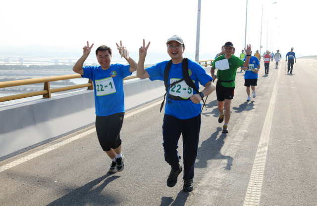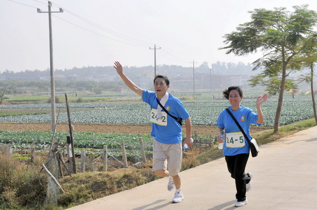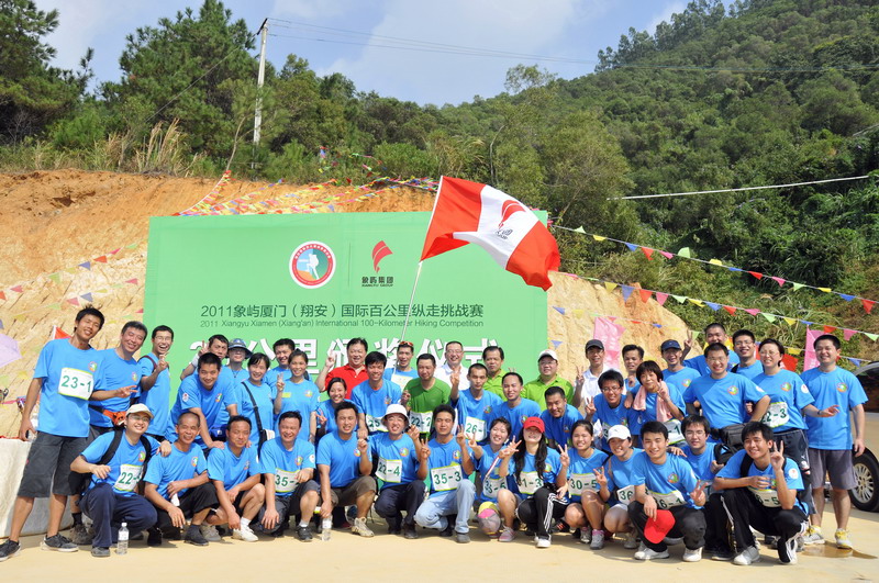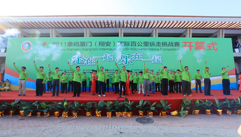 11月5日8時(shí)09分,明媚秋光里,廈門市委常委、副市長(zhǎng)臧杰斌宣布2011象嶼廈門(翔安)國(guó)際百公里縱走挑戰(zhàn)賽開始,廈門市人大常委會(huì)副主任黃杰成、廈門市政協(xié)副主席陳昌生、國(guó)家奧林匹克體育中心副主任彭維勇、象嶼集團(tuán)總裁張水利等一起為比賽鳴槍。來(lái)自28個(gè)國(guó)家和地區(qū)的近萬(wàn)名運(yùn)動(dòng)愛好者,從大嶝小鎮(zhèn)·臺(tái)灣免稅公園廣場(chǎng)出發(fā),穿越田野、海濱、山巒、閩南古厝,開始了一段挑戰(zhàn)自我的征途。這其中,由象嶼集團(tuán)員工及家屬、合作伙伴、共建單位等組成的千人象嶼團(tuán)隊(duì)分外引人注目,浩浩蕩蕩的象嶼人走在一起、樂(lè)在一起,在欣賞沿途自然、人文風(fēng)光的同時(shí),也享受著挑戰(zhàn)自我、永不止步的健康向上,享受著與同事、親朋共度美好秋假的怡然歡樂(lè)。