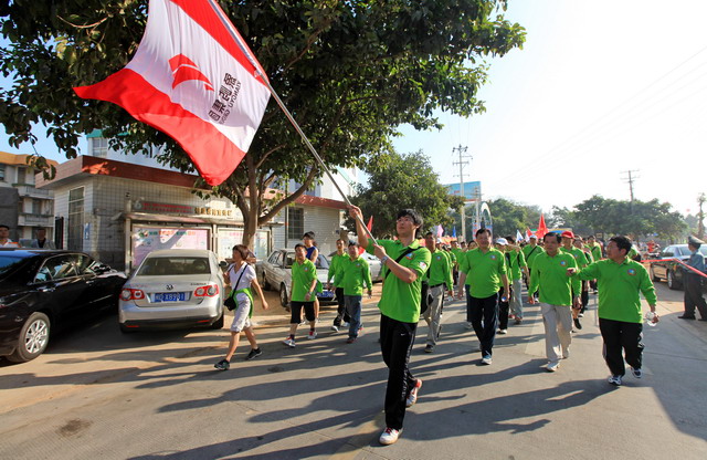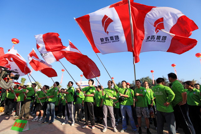 旗幟飄揚(yáng),千人象嶼團(tuán)隊(duì)分外引人注目。